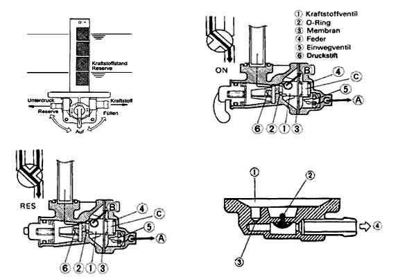 Diese Probleme sollte der Unterdruck-gesteuerte Benzinhahn verhindern, der beim Abstellen des Motors automatisch schließt.