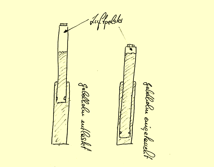 Die Luft in der Luftkammer (= Luftpolster) unterstützt beim Einfedern die Gabelfeder. Der zur verfügung stehende Raum wird verkleinert, die Luft also komprimiert. Ein unter Druck stehendes Luftpolster wirkt wie eine progressive Feder.